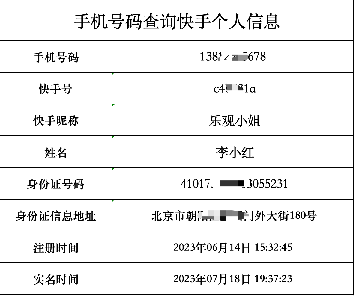 需提供快手号,可查实名,或提供身份证号查实名注册的快手号。